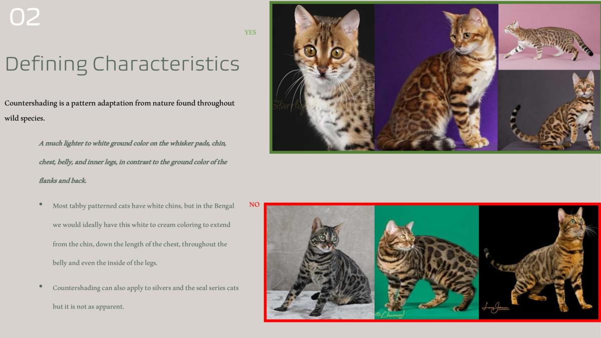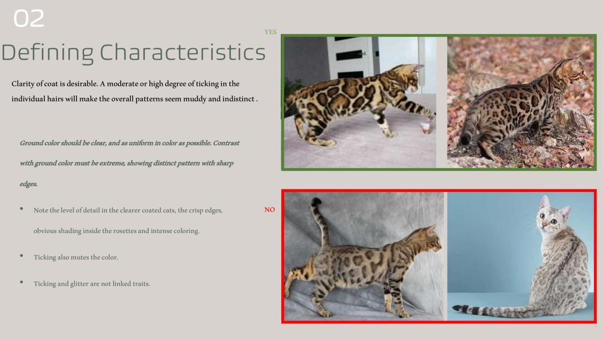 • Bengal patterns should never resemble an American Short Hair nor a Toyger.